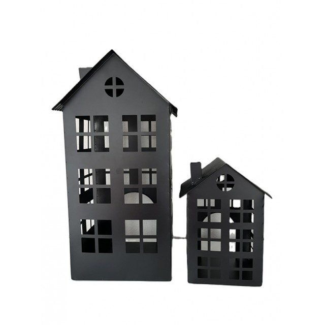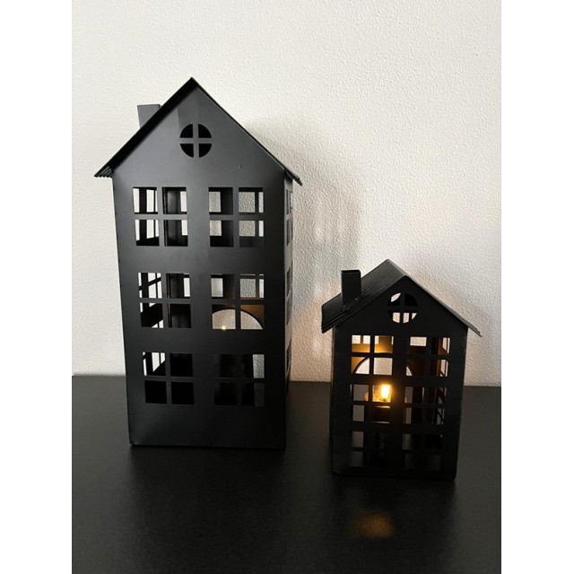 Windlicht Huisje mat zwart metaal