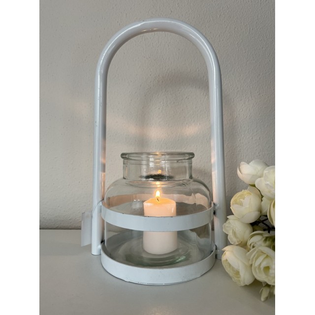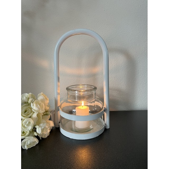 Geef jouw interieur direct meer sfeer met dit modern windlicht in wit met glas. Het strakke metalen frame en het heldere glas zorgen voor een luxe, tijdloze uitstraling die moeiteloos past in elke woonstijl. Perfect om een warme, gezellige ambiance te creëren met een kaars, maar ook prachtig te gebruiken als decoratieve vaas.