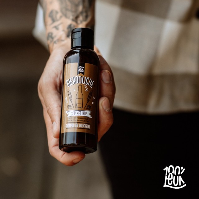 Het pakket is gevuld met onder andere een bierdouche. Dit is een sop met hop en een shampoo + douchegel in één.
