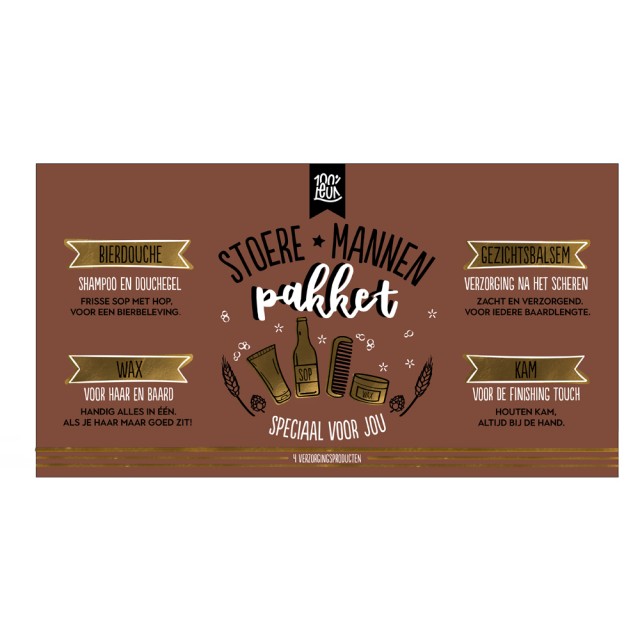 Hét ‘Stoere mannen pakket’ heeft een luxe uitstraling en is een volwaardig cadeau waarmee je voor de dag kunt komen.
